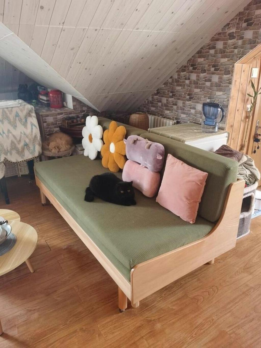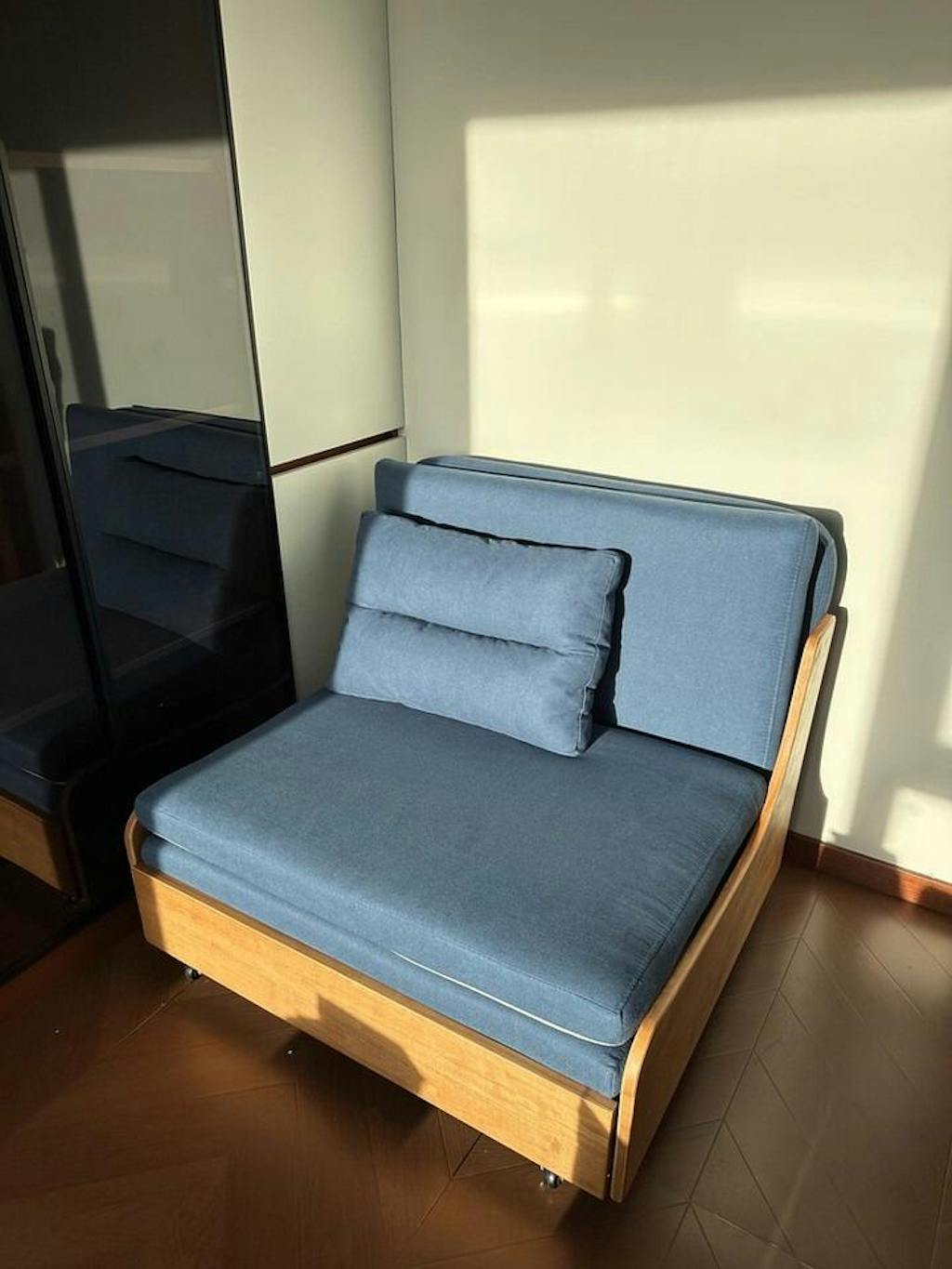 Christina G I ordered this for a small TV room, this was easy to assemble. This convertible sofa has just enough thickness for a couch and bed. I'm very happy with my purchase.