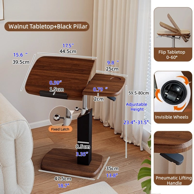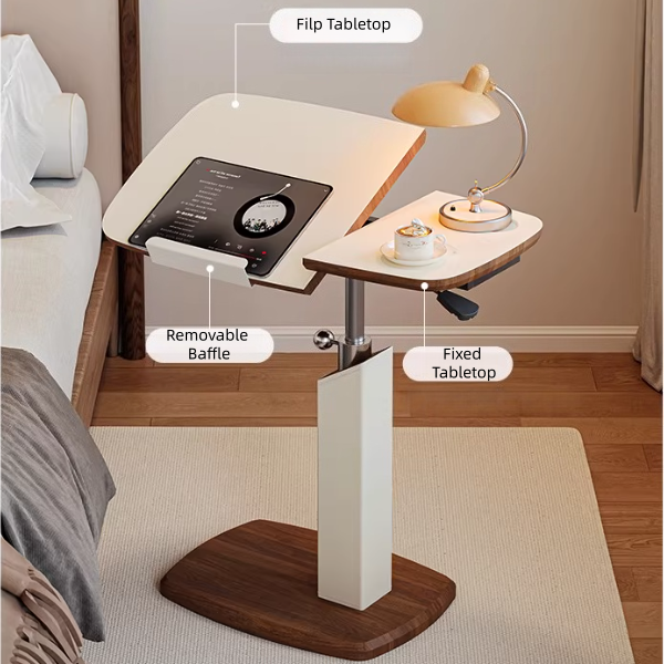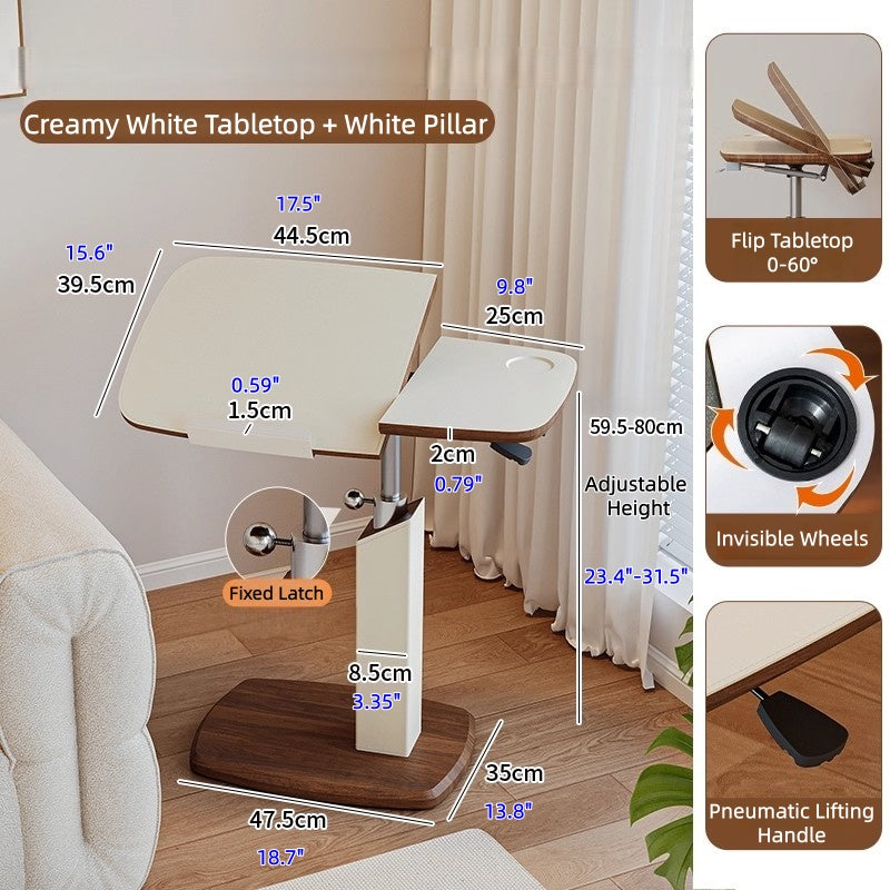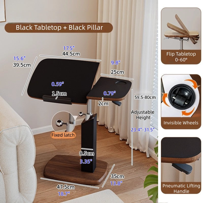- ✨ Smart Flip & Rotate Tabletop: The main tabletop rotates and flips from 0–60°, allowing you to switch easily between flat and angled positions—ideal for working on a laptop, reading, drawing, or watching videos hands-free.