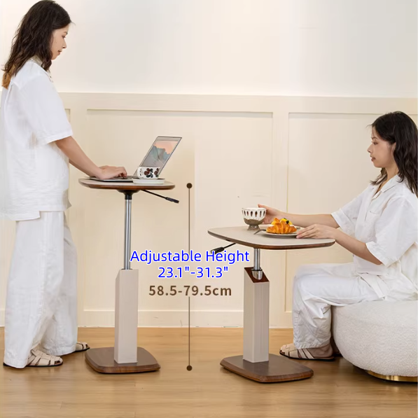 - 📏 Adjustable Height for Total Comfort: Equipped with a pneumatic lifting handle, the table height adjusts smoothly from 23.4" to 31.5" (59.5–80 cm), making it suitable for different seating heights and user preferences.