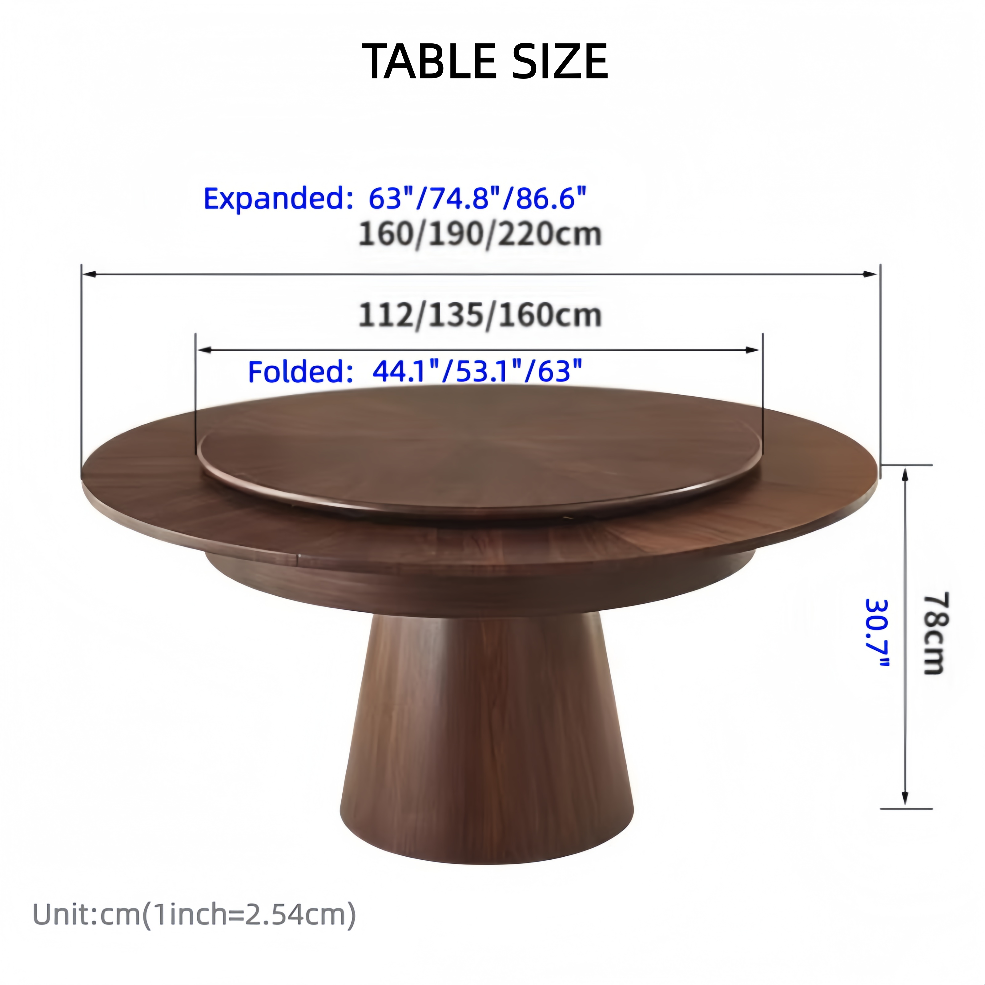 - 📏 2-IN-1 ADJUSTABLE SIZE (44"–86.6") – Easily converts from 44.1"/53.1"/63" round to a spacious 63"/74.8"/86.6" dining surface. Different sizes meet your different needs, making it perfect for everyday family meals or hosting large gatherings.
