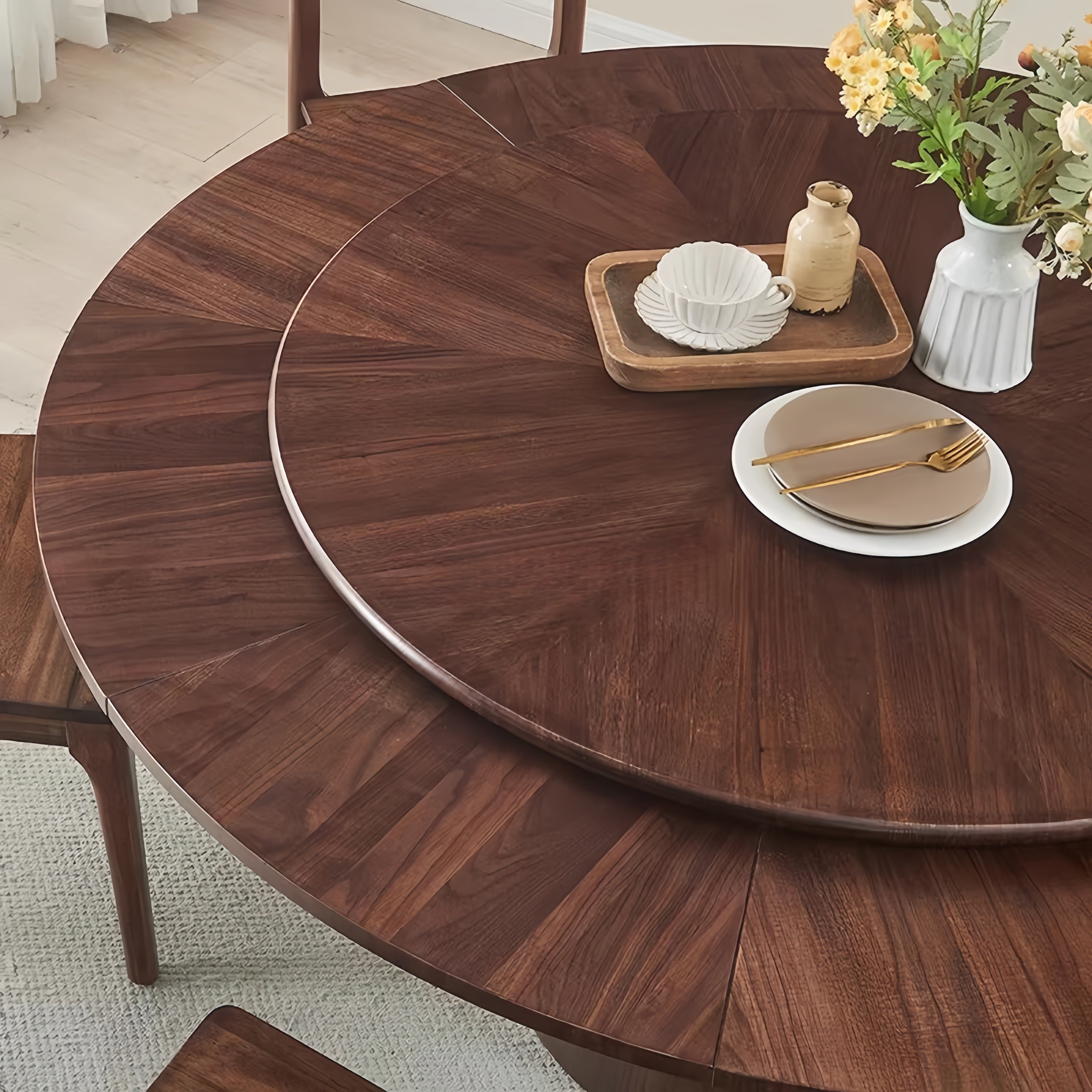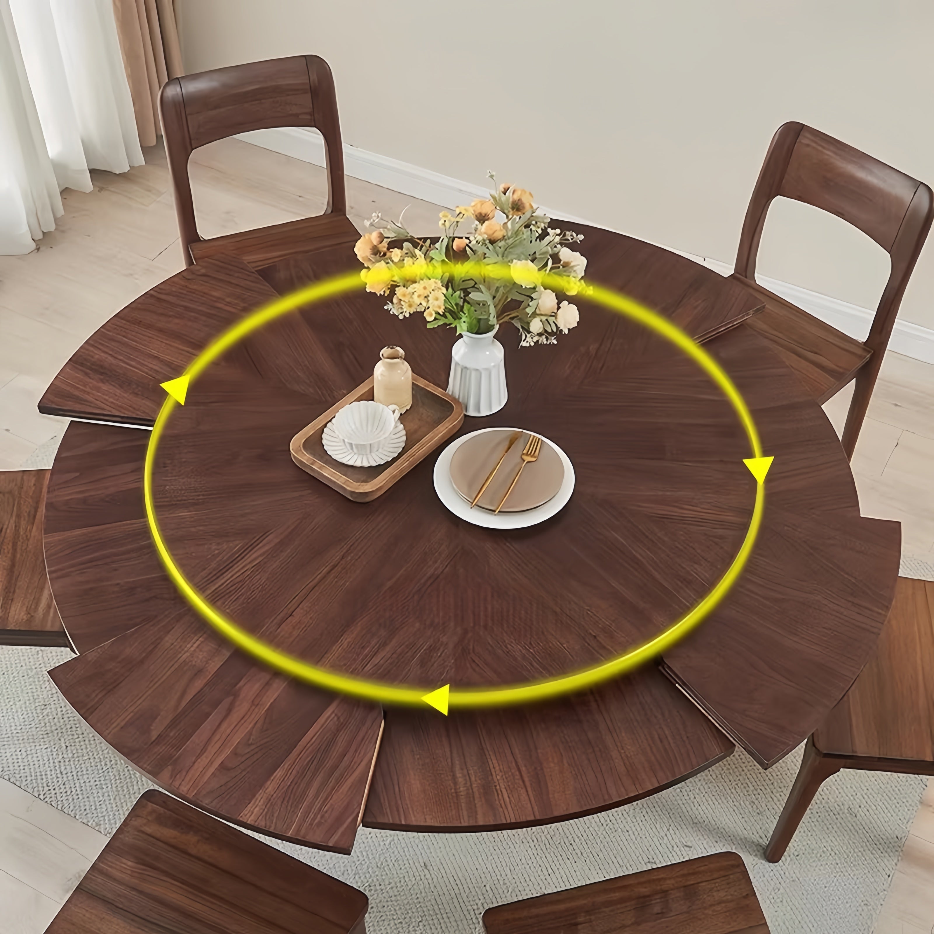 Upgrade your dining experience with this innovative Solid Wood Rotating Expandable Round Dining Table, designed to combine elegance, durability, and smart space-saving functionality. Featuring a unique dual-tabletop structure, this table easily transforms from a compact everyday dining table into a spacious surface for entertaining guests.