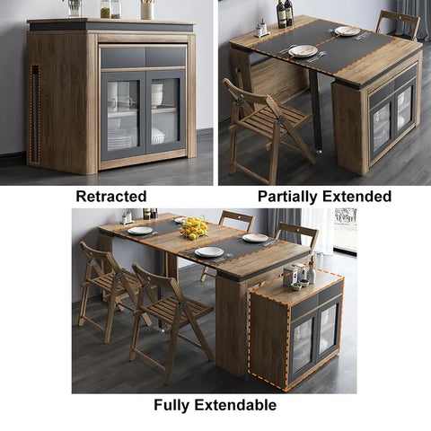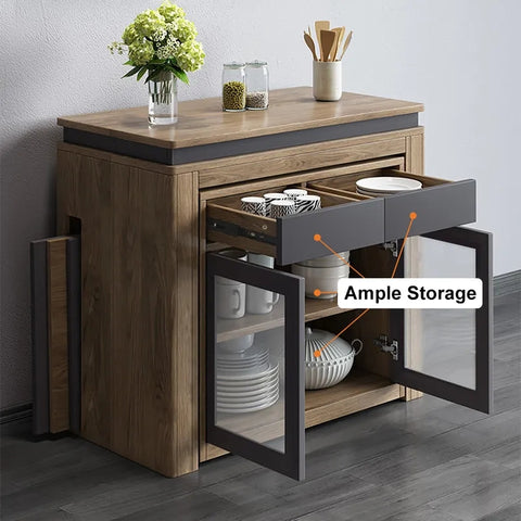 Featuring an understated silhouette with clean lines, this extendable dining table brings a modern flair to your home. Keep the table leaves completely extending, it turns into a spacious dining table to accommodate up to 8 guests. When it's not in use, you can use it as a sideboard with ample storage. This dining table fits easily in smaller spaces, while its neutral finish helps it blend with your existing arrangement. Chairs are not included.