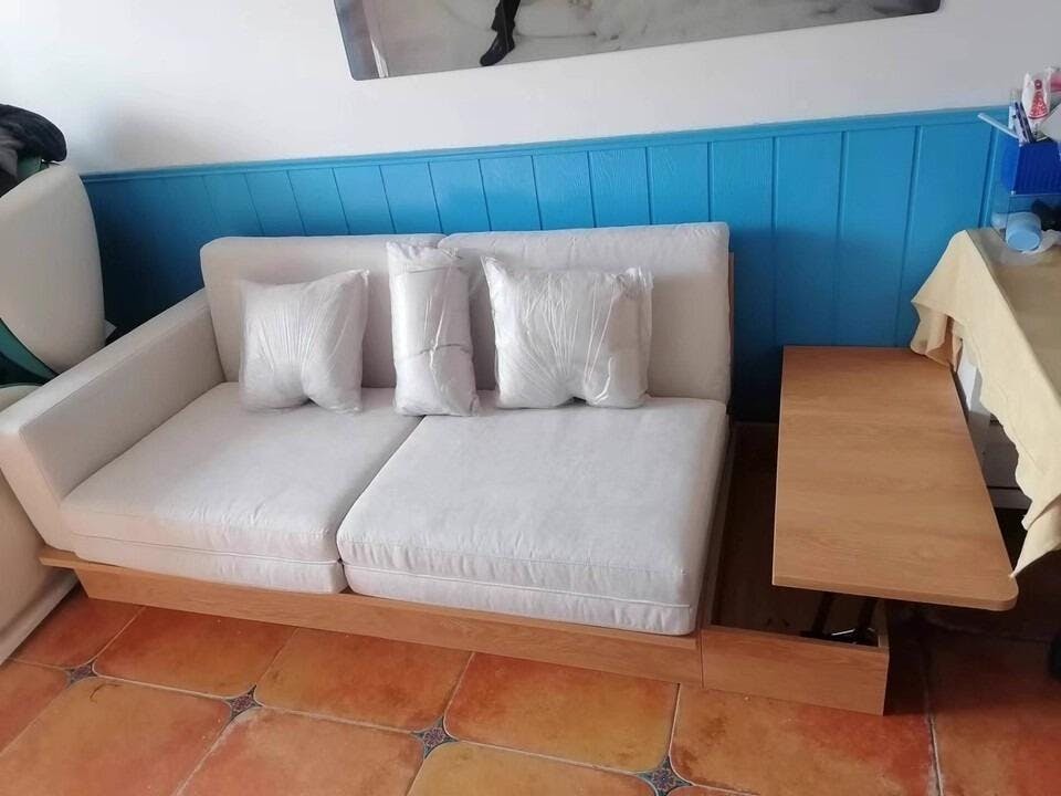 I bought this sofa sofa for my daughter. The sofa design is modern and the sofa cushion is comfortable, the sofa itself is sturdy and fits perfect in her small living room. It was a great purchase.