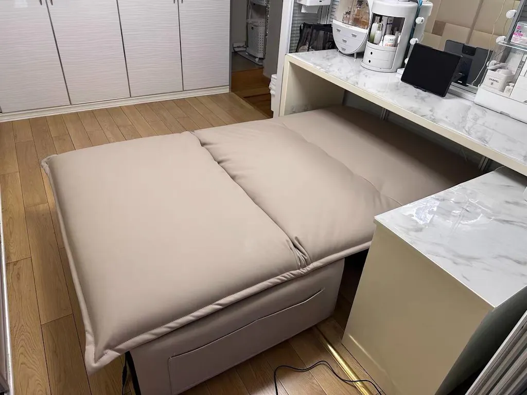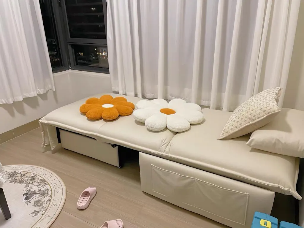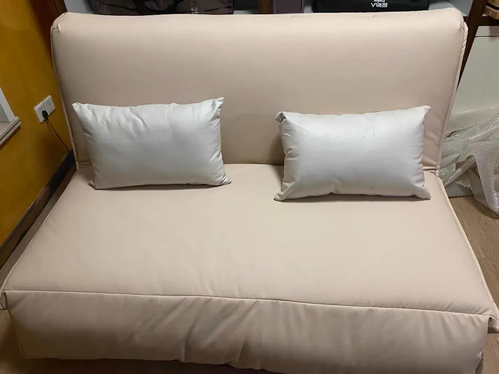 Couch is very sturdy, comfortable and well made. Pull out bed is firm but still comfortable. Sleeps two adults well. Material is very soft.