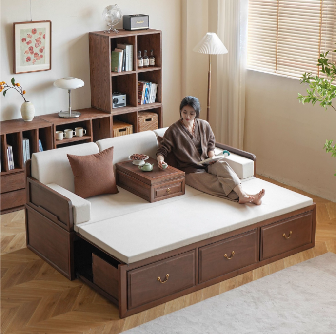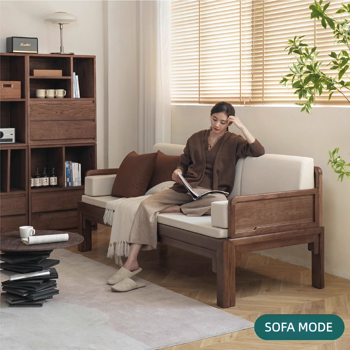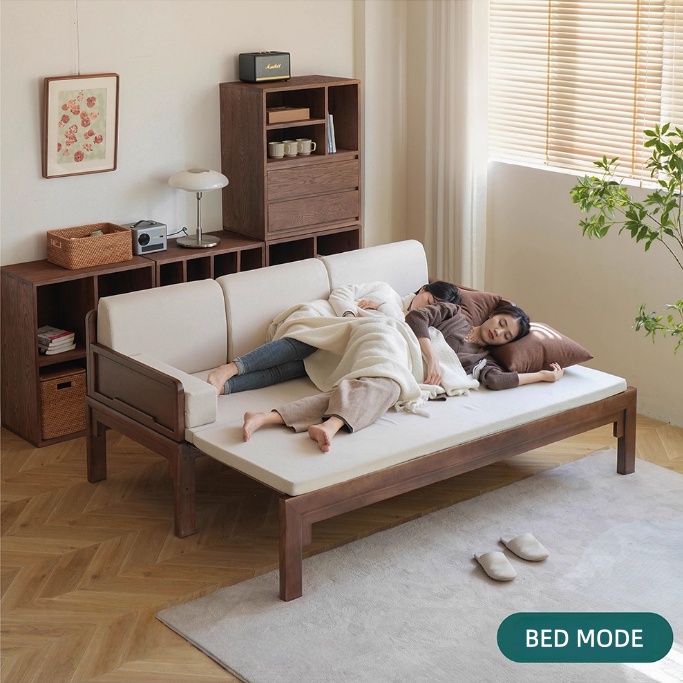 Built from premium-grade solid ash wood, this sofa bed offers exceptional durability, natural grain beauty, and long-lasting stability. Its rich wooden tones add warmth and elegance to any home.