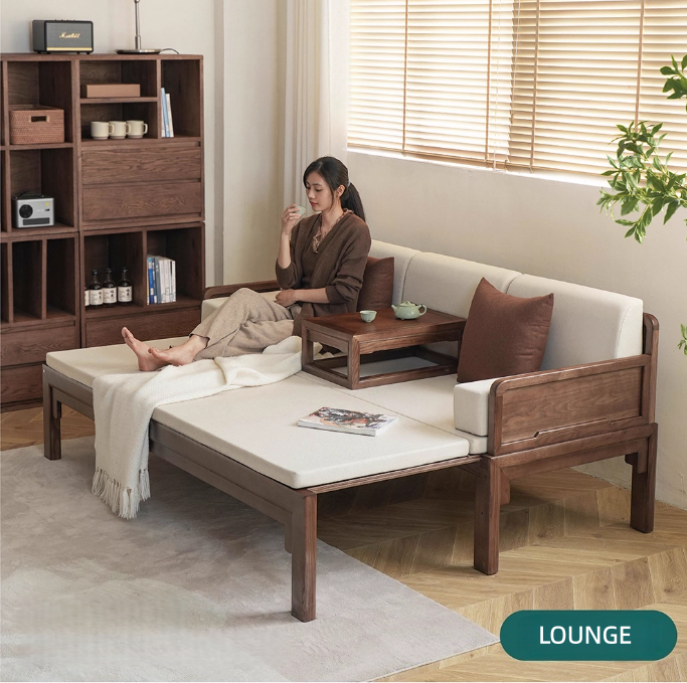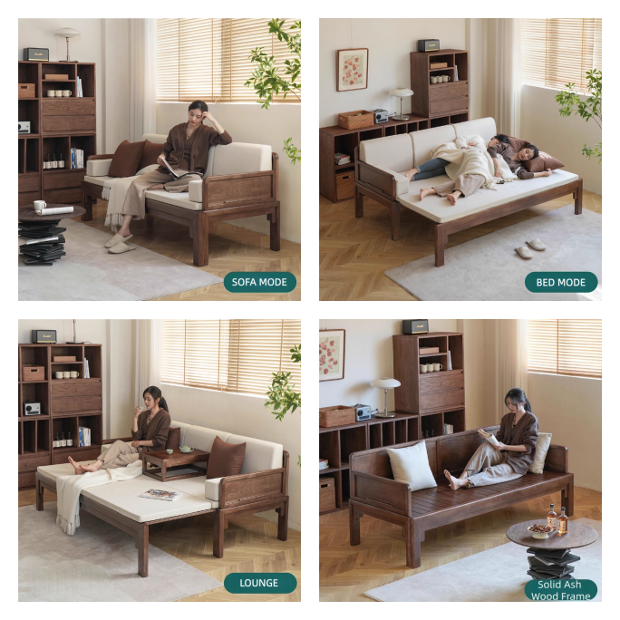 Transform your living space with this beautifully crafted Solid Ash Wood Arhat Sofa Bed, a multifunctional piece designed for modern homes that value style, flexibility, and comfort. Blending traditional craftsmanship with contemporary functionality, this sofa bed seamlessly converts between Sofa Mode, Lounge Mode, and Bed Mode, giving you a smart space-saving solution ideal for living rooms, studies, guest rooms, and small apartments.