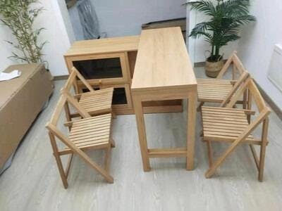 The table set was easy to assemble on our own. It is a perfect size for a small apartment dining area. The table is very sturdy.