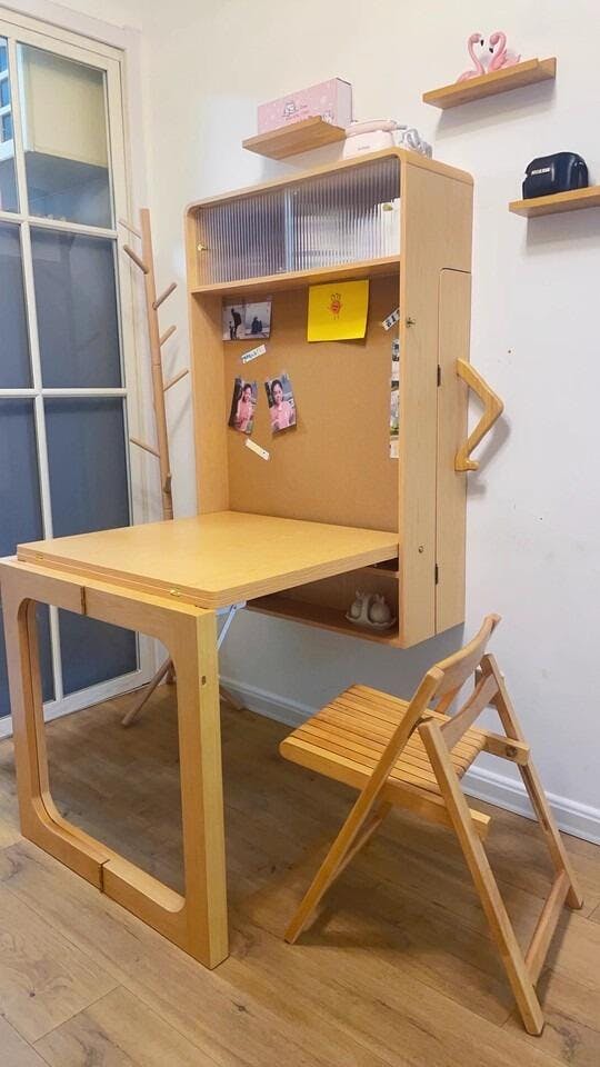 Trina Stotler I love this desk. Took my boyfriend a couple of hours to install it. I enjoy that I can fold it up and away when not in use. The chalkboard is an added perk. It fits into a small space perfectly. I recommend this desk.
