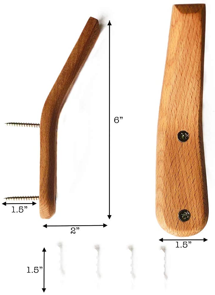 - Brown Beech Wood Hooks Dimensions: 6 x 0.5 x 1.5 inches; Natural Oak Wood Hooks Dimensions: 5.98 x 0.51 x 1.5 inches